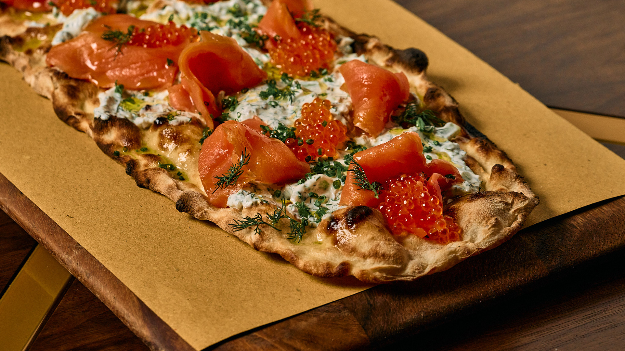The highly anticipated Westside follow-up to Alimento and Cosa Buona is Cosetta, chef Zach Pollack’s breezy new California-Italian restaurant, located on Ocean Park Boulevard. The interior is a total 180 from his previous dimly-lit East side spots, with a cheery indoor-outdoor space that feels like a spa retreat: buttery wooden tables complemented by dark green accents and Space Age orbs floating overhead. Expect Pollack’s signature pizzas — fluffy and with a perfectly blistered crust — alongside an exciting raw bar (hello, chilled snow crab claws), house-baked bread, and a few larger plates, like BBQ prawns in a mouth-tingling Calabrian chili crisp and sand dabs dabbed in a caper-olive tartar sauce. (Say that ten times fast.) There’s kid-friendly menu items, plus decidedly adult offerings like a Cannoli Negroni (the classic cocktail plus cocoa nibs, orange peel, and a ricotta wash), so feel free to bring the whole fam.