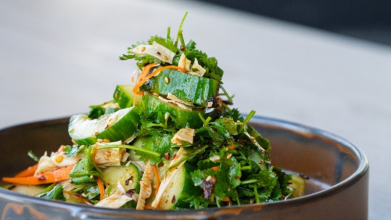 Run by husband-and-wife duo Minty Zhu and Alex Falco, this new-age Chinese restaurant and tea lounge in the former Cosa Buona space lifts its name from an ancient Confucius quote: “Without feelings of respect, what is there to distinguish men from beasts?” The quote’s underlying philosophy is subtly woven into Men & Beasts’ offerings: the restaurant specializes in vegan versions of traditional Chinese dishes and dim sum staples. Crispy pan-fried dumplings are stuffed with faux-pork and shiitake mushrooms; instead of crab, rangoon puffs contain broccoli, truffle oil, and tomato soup. Beyond inventive dishes, the adjoining tea lounge offers an immersive gong fu cha tea ceremony featuring jade green and oolong selections.
