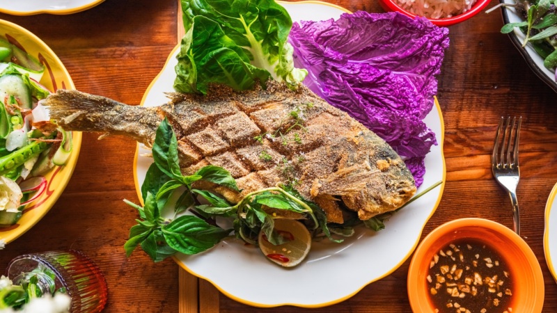 Bong encapsulates deeply personal, delicious cooking in New York right now. Helmed by partners in life and business, Chakriya “Cha” Un and Alexander “Chapi” Chaparro, it’s a vibrant exploration of Khmer food that’s quite unlike any other restaurant in the city. Dishes draw their bold tastes from a variety of sources, including fragrant lemongrass, galangal, and fiery chiles grown by Un’s mother and father in South Carolina. There’s a showstopping whole lobster — named for Un’s mom, Kim Mann — slicked with shallots and ginger, as well as a juicy heritage pork chop whose fattiness is tempered by a sauce of tomatillos, mustard seeds, and curry leaves. Cha kapiek, a spicy shrimp and peanut dip served with crudite, packs a powerful punch, and clams machew, swathed in a sour broth of tamarind and lemongrass, and served with eggplant and celery, is sublime. The art-filled space is tiny, with just 20 seats inside and a few scattered on the patio in good weather, but you never feel quite cramped or small while you’re there; the uniquely Khmer flavors, and the warm hospitality, make sure of that.