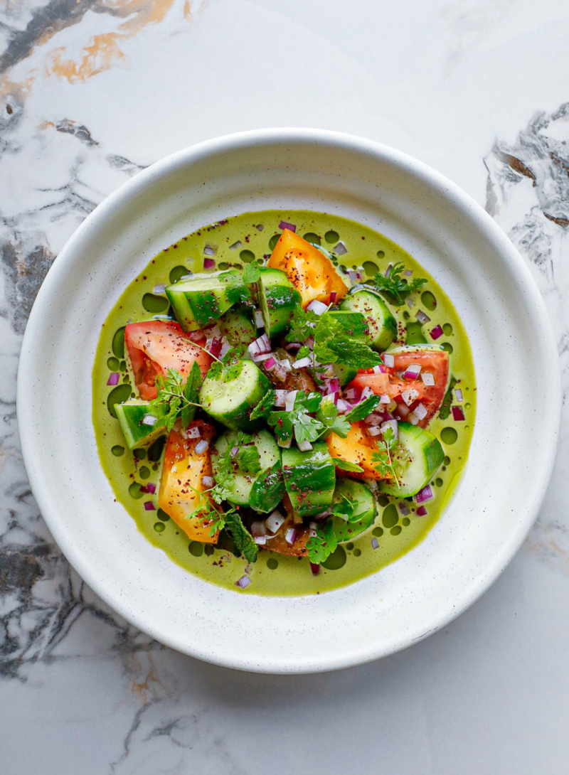 Ali Saboor, together with Nasim Alikhani of Sofreh, has pioneered contemporary Iranian food in New York, and a meal at his solo project, Eyval, is truly worth seeking out. Open since 2022, Eyval continues to impress year after year with Saboor’s commitment to excellent cooking. While the menu focuses primarily on street foods, especially kebabs, there’s a distinct elegance to how he grills those kebabs, as he does with everything else on the menu. It’s a studied balance between traditional flavors and techniques and a few subtle, unexpected twists. Case in point: the bright melon feta salad with lemon drop and watermelon, mixed with spiced walnuts, sheep’s milk feta, and a Sungold vinaigrette. Pro tip: The eggplant and cured yogurt kashke bademjan is a non-negotiable.