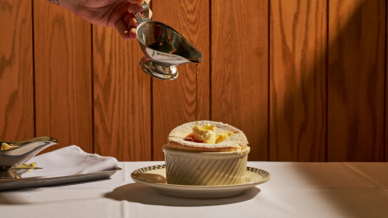 At Jeremy Salamon’s newest venture in Red Rook, Pitt’s, the pancake soufflé arrives at the table with a carafe of molten butter poured into its inflated core. But the less flashy pixie pie, with a tart citrus curd and saltine crust, should also not be ignored.