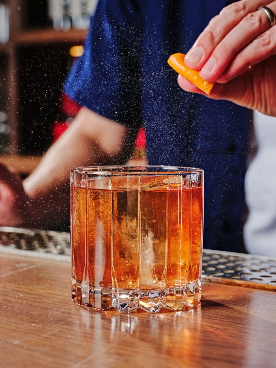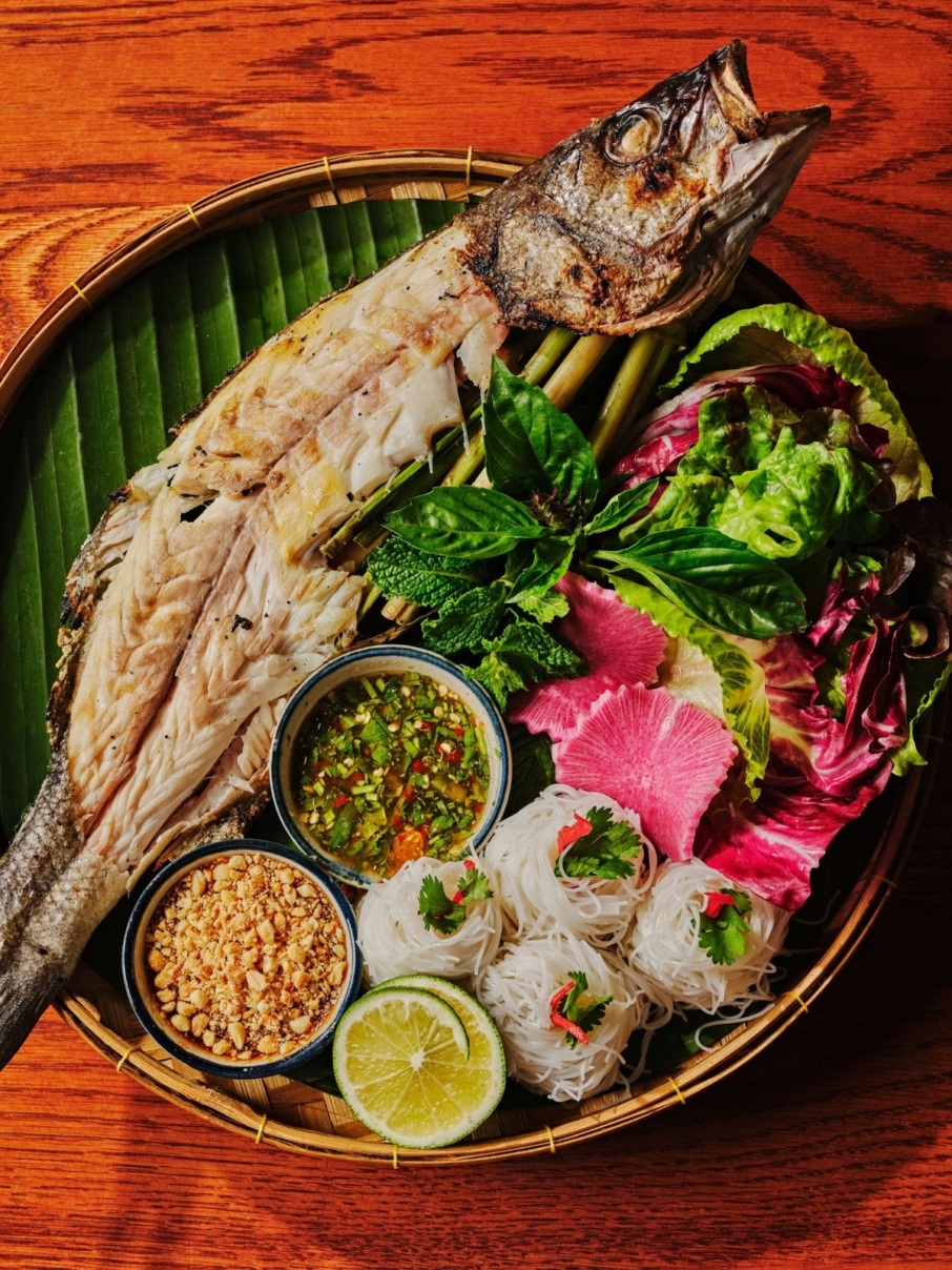 After dinner, the Pink Lotus espresso martini gets a tropical twist with dark rum and a hint of coconut. For Old Fashioned enthusiasts, the bar’s Isaan riff on the cocktail is another failsafe way to end the night, with Thai basil bitters and toasted rice syrup adding intriguing aromas to a classic. Both pair well with a custardy taro cake, a novel sweet and savory play that surprises the tongue with crispy baked-in shallots and delights the eye with edible gold leaf and a beet powder “Pink Lotus” logo to remind you that this experience can be found nowhere else.