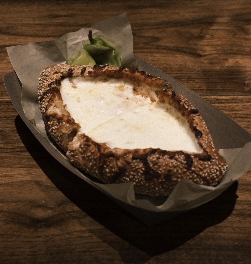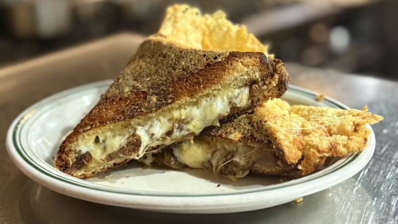 The grilled cheese at Double Chicken Please challenges any preconceived notions of the classic sandwich. While the dish looks more like a Georgian khachapuri than a pressed sandwich, it has all the right components: a pool of melty mozzarella flavored with salty Pecorino Romano, a deeply savory marinara-coated filling, and crisp-crusted bread to hold everything together.
