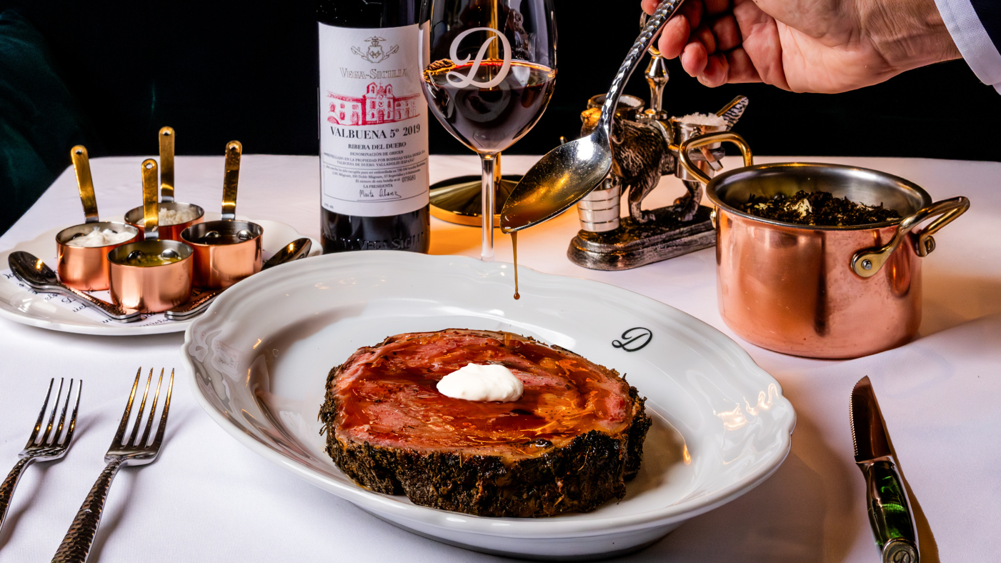 Being mindful of waste played a role, too. “One of our primary objectives was to utilize the trimmings of beef before and after cooking, thereby minimizing waste,” Ganem says. With the prime rib, the beef trimmings are rendered back into the cooking process and later reborn as a melt-in-your-mouth French Dip sandwich, available all day at Daniel’s Bar.