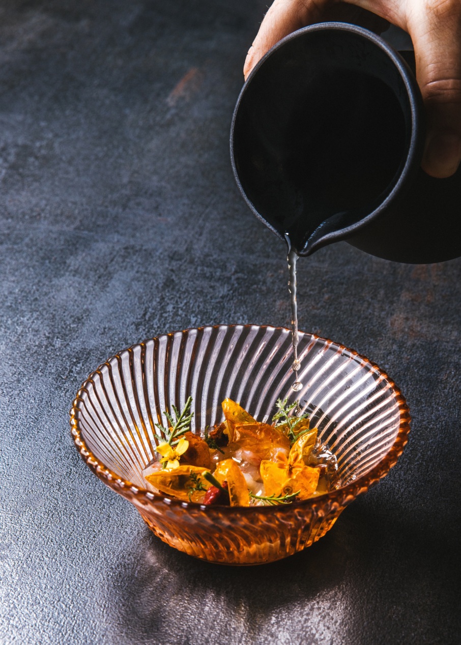 That sense of kinship extends into the objects on the table, too. Tableware comes courtesy of Moody’s father, a ceramicist, while Connan, his brother, provides coffee and has proved influential in providing inspiration for the drinks. Every meal begins with a welcome beverage; right now, it’s a cucumber and preserved anise hyssop soda — a direct result of Connan’s influence.