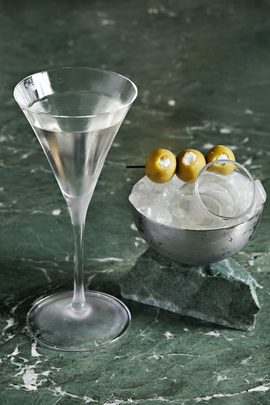 Dubbed “Put the Wine in the Coconut,” the daiquiri is a clear standout, an expertly balanced mix of rum, muscat, and lime juice dusted with powdered fig leaf for an earthy edge. The house martini also goes above and beyond, featuring gin layered with blanche Armagnac, dry vermouth, tarragon, and a hint of butter for texture, all served beside a blue cheese-stuffed olive, cornichon pickle, tart caperberry, and a sidecar on ice.