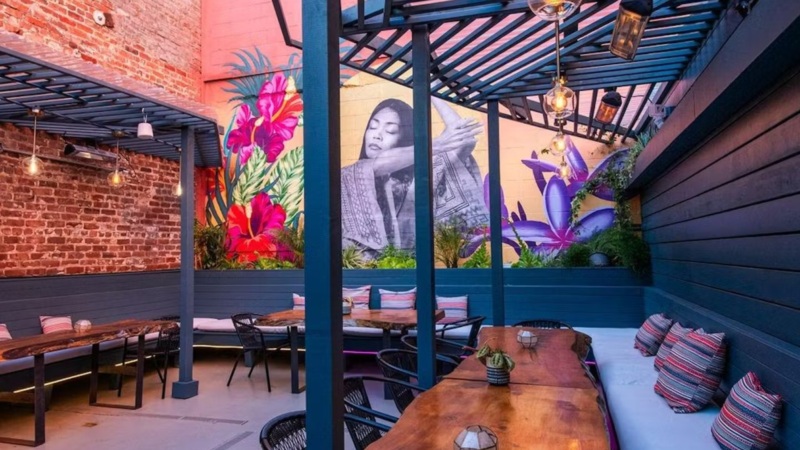 This is the kind of spot that morphs to whatever your needs may be: You’ll find shishito peppers and truffle fries, blue corn tacos stuffed with beef tenderloin, and pad Thai-inspired salad alongside za’atar flatbread. Fun soju cocktails, like the Memento Mori, are colorful and make the night worthwhile.