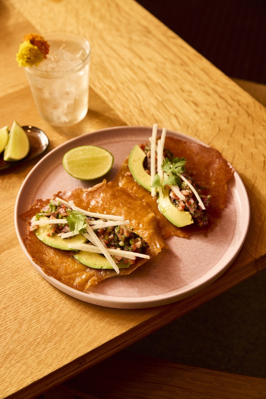 For starters, this means a shrimp taco with black beans and pickled mango and the New York taco, with crispy Chihuahua cheese, avocado, and tomato.