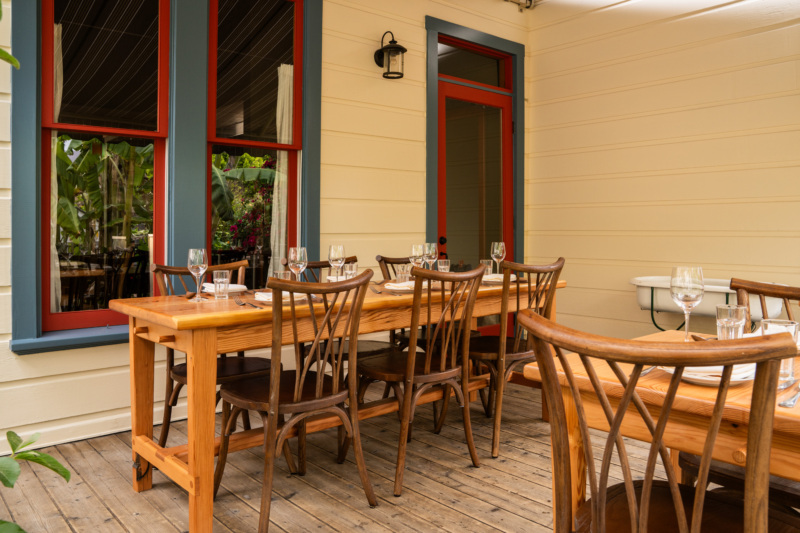 We always keep the front patio for walk-ins, which has a few benches and small tables, and stools with taller tables. We can take another eight to 10 people out front. They’re mostly two-top tables, but four can definitely be done. And most nights, with some rare exceptions, the whole menu is available out front.