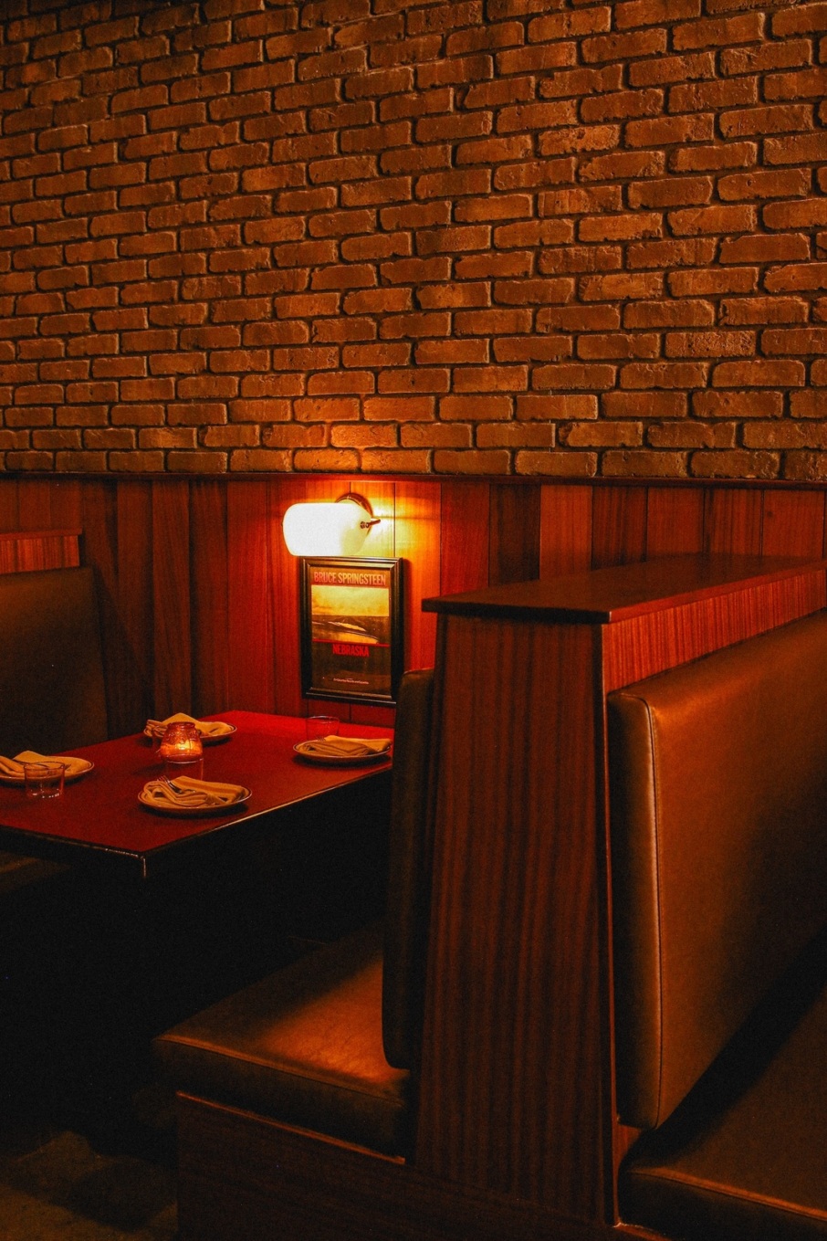 We wanted it to feel homey and nostalgic, like the kind of pizzeria you grew up going to. There are cozy booths for larger groups, some floating high-tops, and a banquette area that can shift for bigger parties.