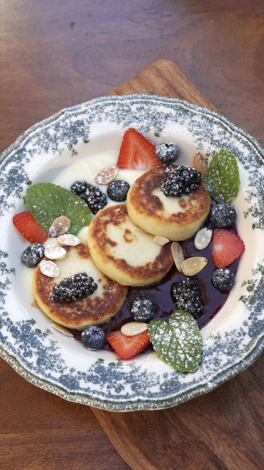 These pelmeni aren’t on our regular menu — we only make them special days, like Father’s Day, as a tribute. They’ve become a signature here not because of trend or demand, but because of the story they tell. Another standout, and probably our most loved dish, is our syrnyky, sweet cottage cheese pancakes that are crispy on the outside, tender and fluffy on the inside. We serve them with seasonal fruits, homemade sauces, or sour cream.