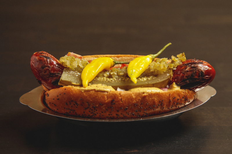 I started doing it at The Four Seasons Chicago during a Crosstown Classic event for Common Threads. I created a hot dog and I did it five years in a row with different competing chefs. The hot dog just kept growing into a legend and eventually made it onto the bar menu. When I opened The Duck Inn I knew I had to bring it with me, but I had to make it a little different from the Four Seasons because they kept it on the menu. I formulated a new recipe using duck fat and beef fat with a 100-year-old sausage-maker in Bridgeport called Makowski’s Real Sausage. We sell 150-175 hot dogs a week.