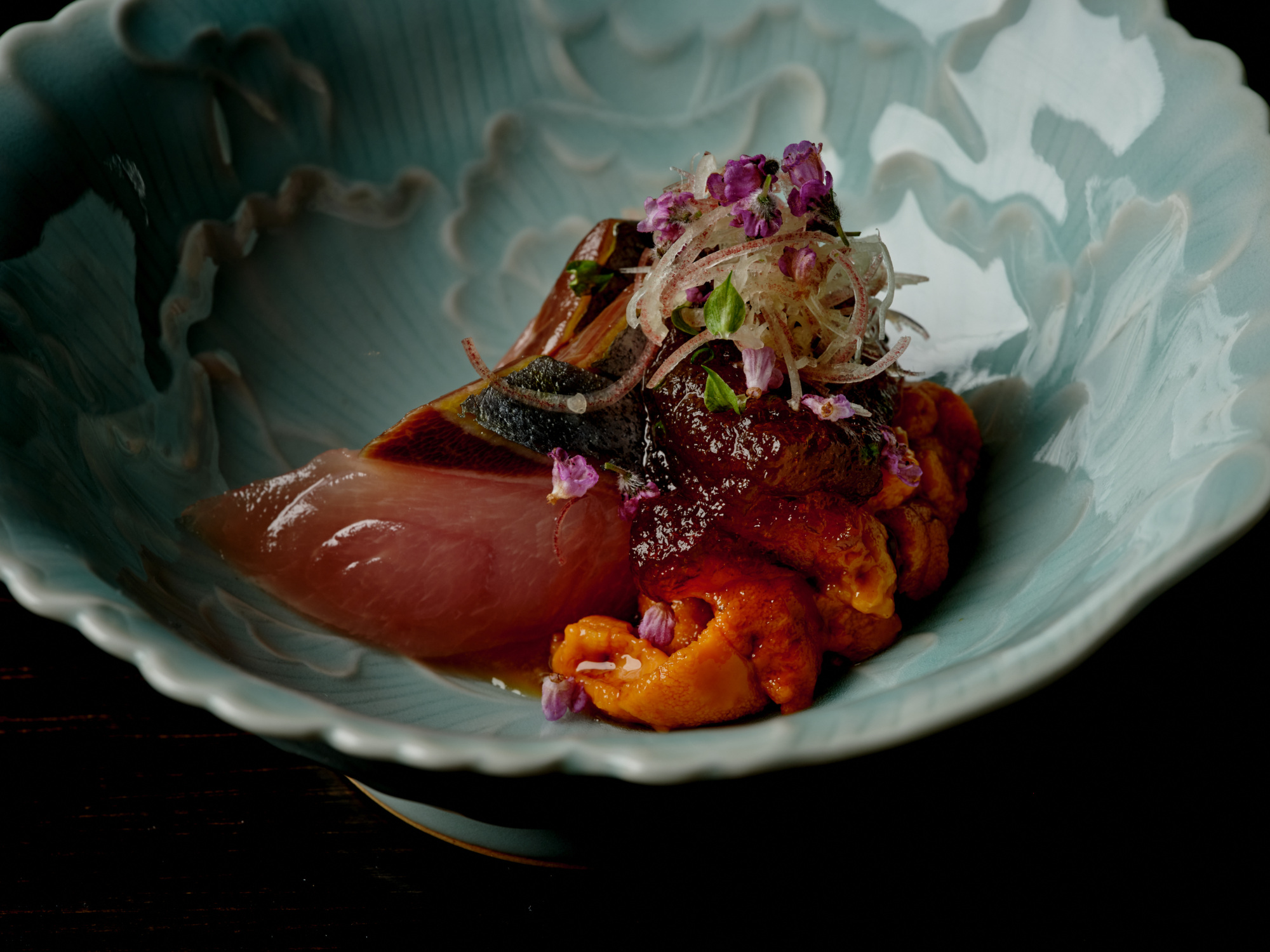It’s an L.A. homecoming in many ways for Baik, who discovered his passion for cooking not at his parents’ Kobawoo House — an iconic Koreatown restaurant known for its bossam — but in New York, working in the kitchens of some of the most lauded fine-dining restaurants in the world: Eleven Madison Park, Bouley, the Chef’s Table at Brooklyn Fare, and Sushi Noz. The throughline for these contemporary French and Japanese restaurants was the mentors who nurtured Baik’s growing curiosity and reverence for pristine-quality seafood.
