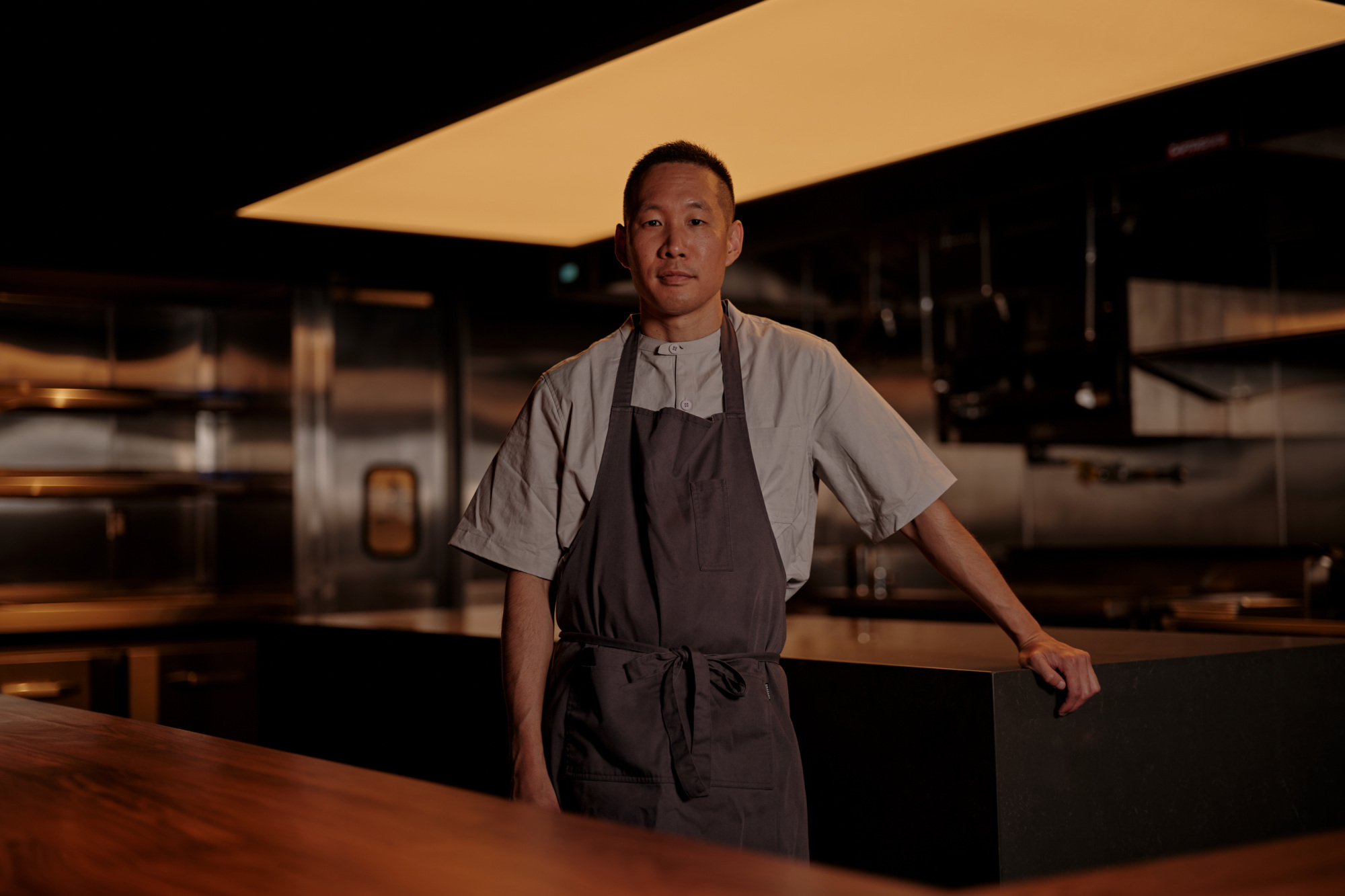 Creating an open kitchen format was a key element for Baik, who holds his ingredients in such high regard that he wants to get the dishes to his diners as soon as they’re made. “The proximity of the open kitchen — being able to turn around the dish to our guests at the right temperature and peak moment in time — [is important] so that they can enjoy how it’s meant to be enjoyed,” he says.