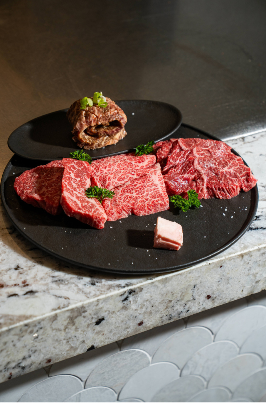 The choice to exclusively use American wagyu was also an intentional one. “We tried prime grade steaks, Japanese wagyu, and other varieties, but I’ve found that American wagyu is closest to Korean cattle in terms of its marbling score and feed program,” he notes.