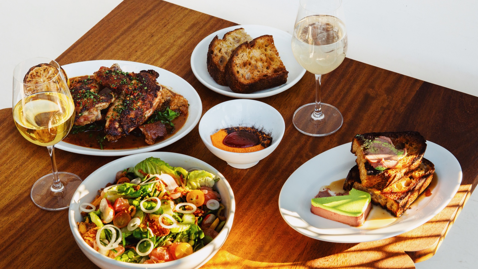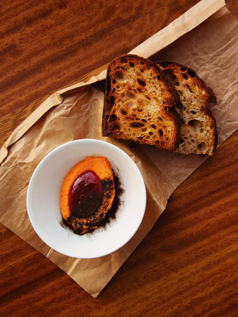 To start, enjoy bread service with fermented Nardello butter and Nardello jam, appetizers like shima aji crudo; wagyu beef tartare with burnt negi; Jidori chicken liver parfait with celery butter; and of course, a Sqirl take on a Caesar salad (think croissant croutons and parm).