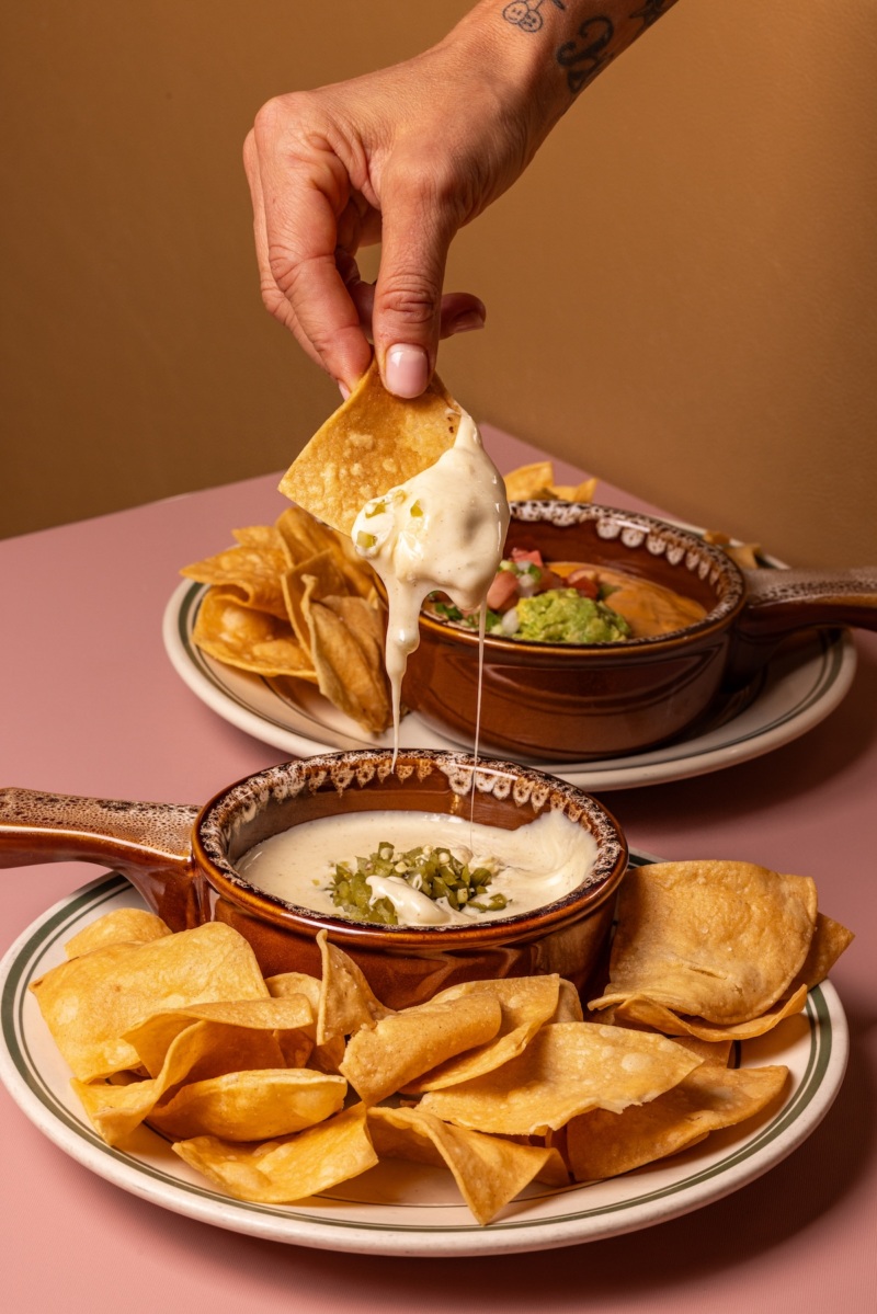 Our favorite vegan dishes: Cashew queso, veggie enchiladas, veggie burger, southwest salad, and collard greens.