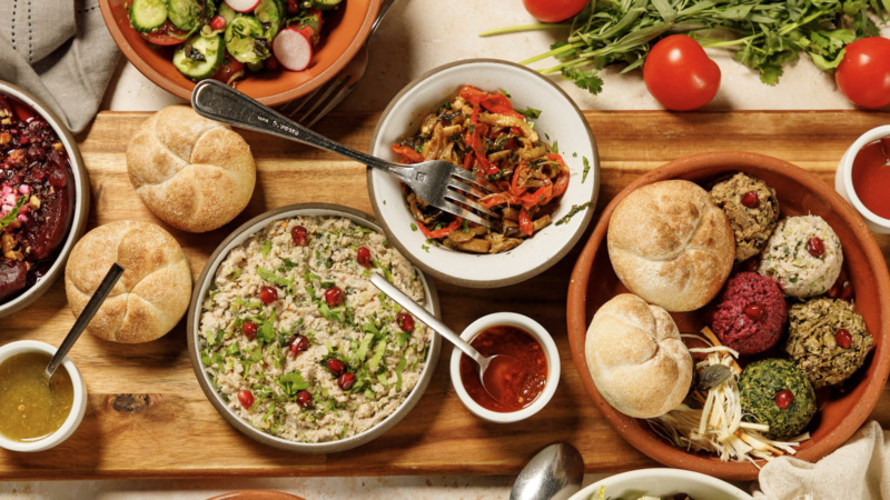 Our favorite vegan dishes: Any of the pkhali, corn bread, lobiani, and cauliflower.
