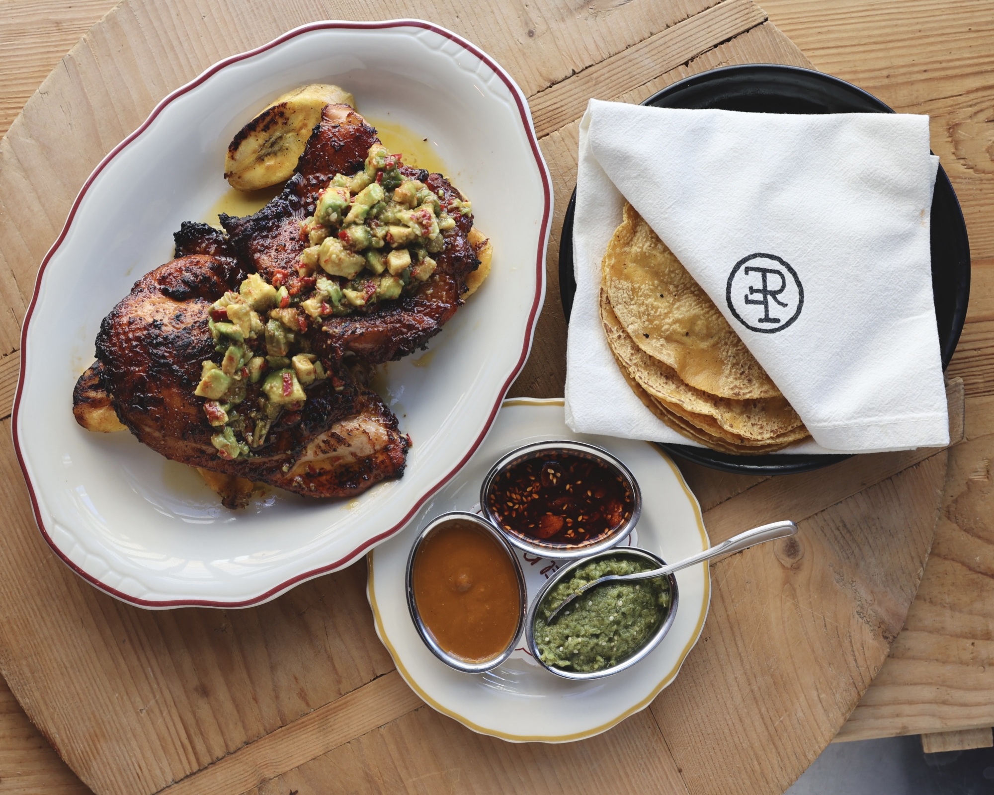 Given the regional history, plus the fact that he spends a considerable amount of time in Todos Santos, Mexico, the direction “naturally veered towards Mexican,” Boudet says. A Santa Maria grill and the in-house nixtamalized corn program (Boudet traveled to Oaxaca for hands-on lessons) bridge Central California and Mexico. Fire-cooked proteins like a chicken asado topped with celery avocado salsa, and fall-off-the-bone pork ribs al pastor with bright green papaya pineapple slaw, come with stacks of house-made tortillas. The latter pairs particularly well with a pour of Lomita Cabernet Sauvignon produced in Valle de Guadalupe, while Spanish and Central Coast bottles are well-represented on the list.