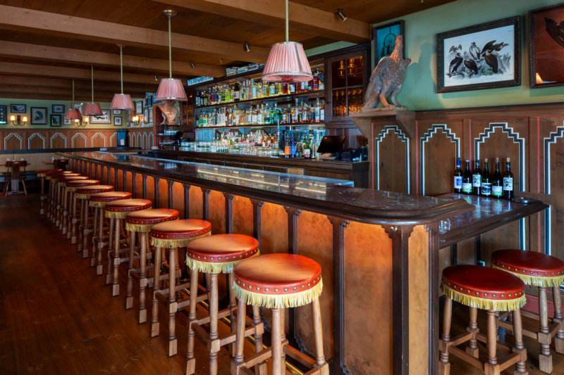 Condor Bar leans into its avian theme, with easter eggs like a DVD of director Sydney Pollack’s 1975 spy thriller Three Days of the Condor, alongside vintage illustrations and other thematic decor. The bright patio outfitted with a fireplace contrasts with the darker dining room. Meanwhile, the lavishly decorated Snug Bar, adjacent to the lobby, again proves the undeniable pull of a jewel box-like nook. (Plus don’t miss the El Roblar memorabilia on view near the hotel check-in desk.)