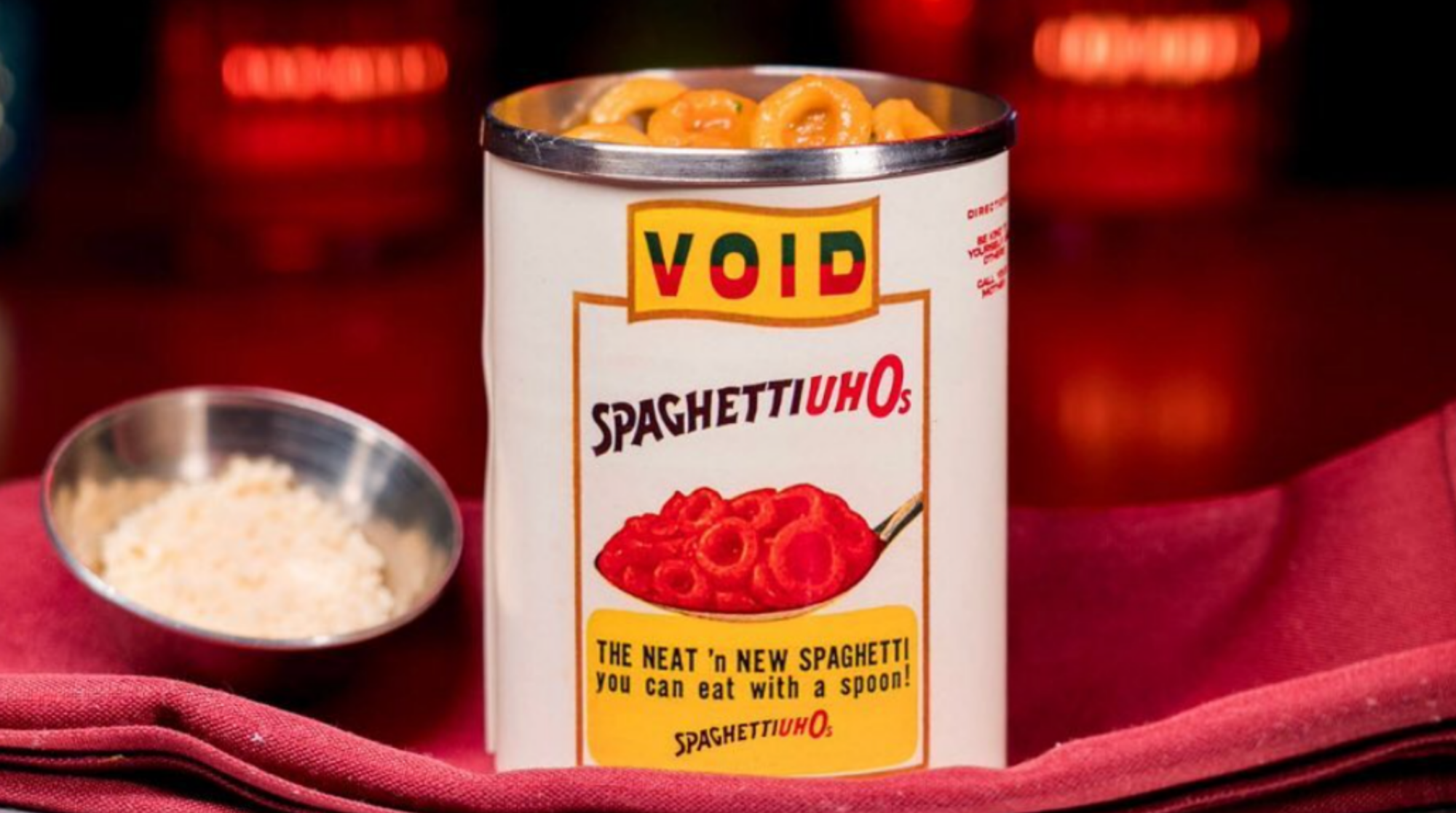 The cheeky Spaghetti Uh-O’s is a childhood reference executed with adult precision.