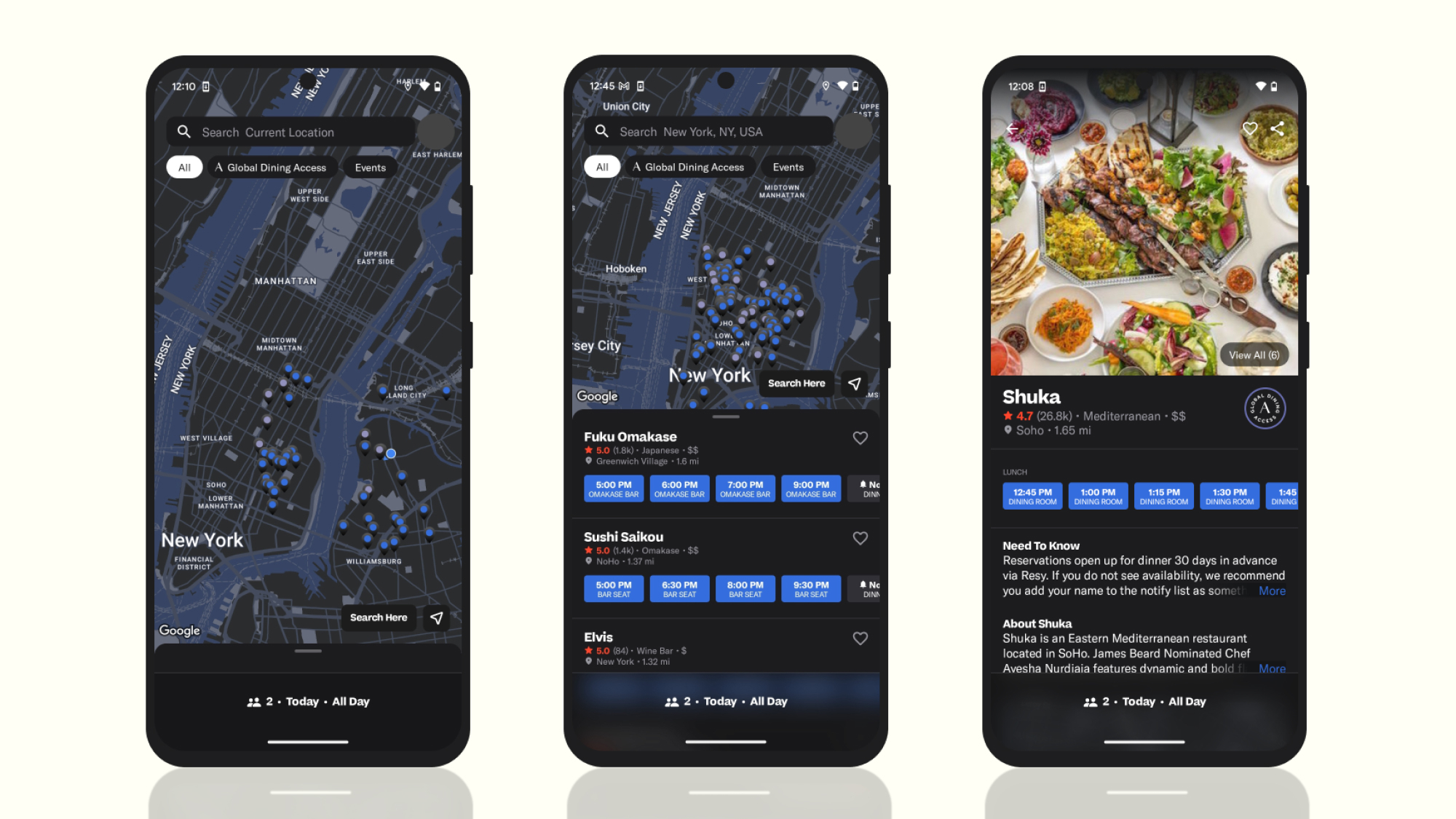 Android users now have in-app access to key Resy features like Notify, Hit Lists, Invite Guests, exclusive dining experiences, and more—empowering them to explore and reserve unforgettable meals with ease. Additionally, eligible American Express® Card Members can enjoy benefits like Global Dining Access through the Resy Android app. In the coming months Android users can expect more features to be added, including Discover Tab, which gives mobile users access to Resy’s extensive original editorial content, and additional filters on map, which allows users to narrow their search based on availability or editorial collections like “New on Resy” or “Great Sushi”.